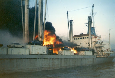 January 1986 has gone down in the weather archives as a particularly angry month, with gale force wind and heavy rain recorded on many days, not least Tuesday 28th. I hadn't long finished my evening meal when there came a knock on the door from one of the Naval Base drivers with a request from the Queen's Harbour Master for me to return to duty, which I did with the driver. On the way he briefed me that a Libyan freighter, broken down mid-channel (English Channel), had sent a Mayday message with little more information than that. The harbour tug Sheepdog was deployed to effect a rescue, in conditions that were not ideal, but on arrival found we had a major problem with language barrier.
